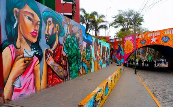 Barranco is Lima’s bohemian district, brimming with street art, galleries, bars, cafes, and colorful architecture. Key landmarks include the Bridge of Sighs, the ocean viewpoint, and its streets adorned with murals. It’s ideal for those seeking an authentic, creative, and relaxed Lima, perfect for an evening stroll.